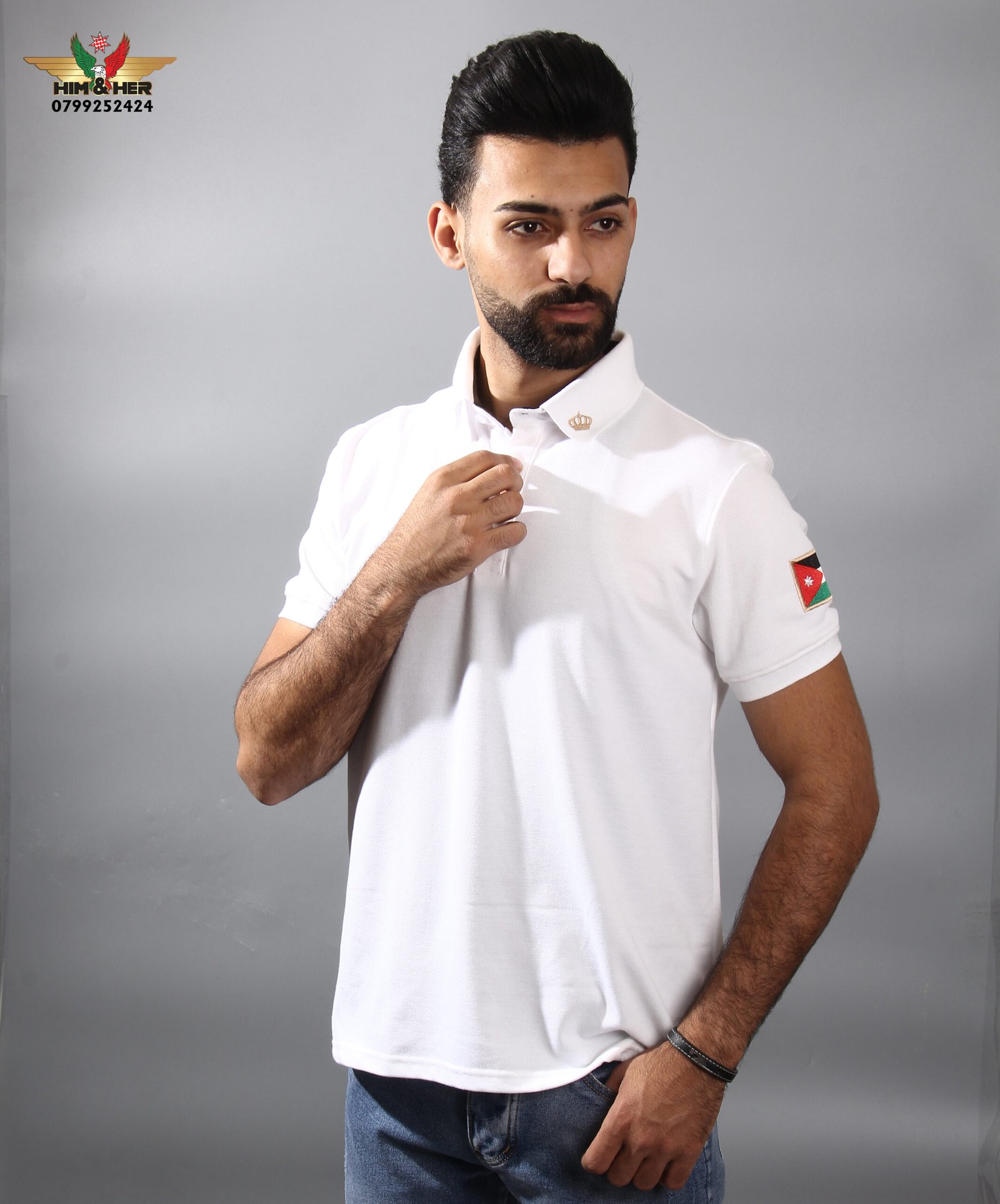 تيشيرت رجالي ابيض بياقة مقاسات والوان مختلفة بطباعة وبدون طباعه